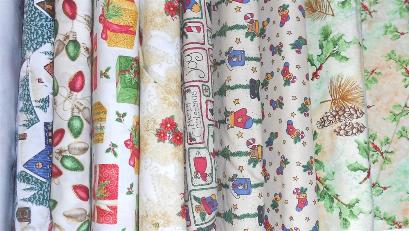 | CHRISTMAS At Robin's Nest we have a wide variety of Winter/Christmas fabrics from snowflakes to Santa and snowman fabrics, cardinals and Christmas ornaments, holly leaves, candy canes, precut yard and half yard pieces and fabric on bolt. We have quilted table topper and table runners, tree skirts, books, patterns and more. Stop in to see our ever changing variety of Christmas panels, bundles, and fat quarters. |